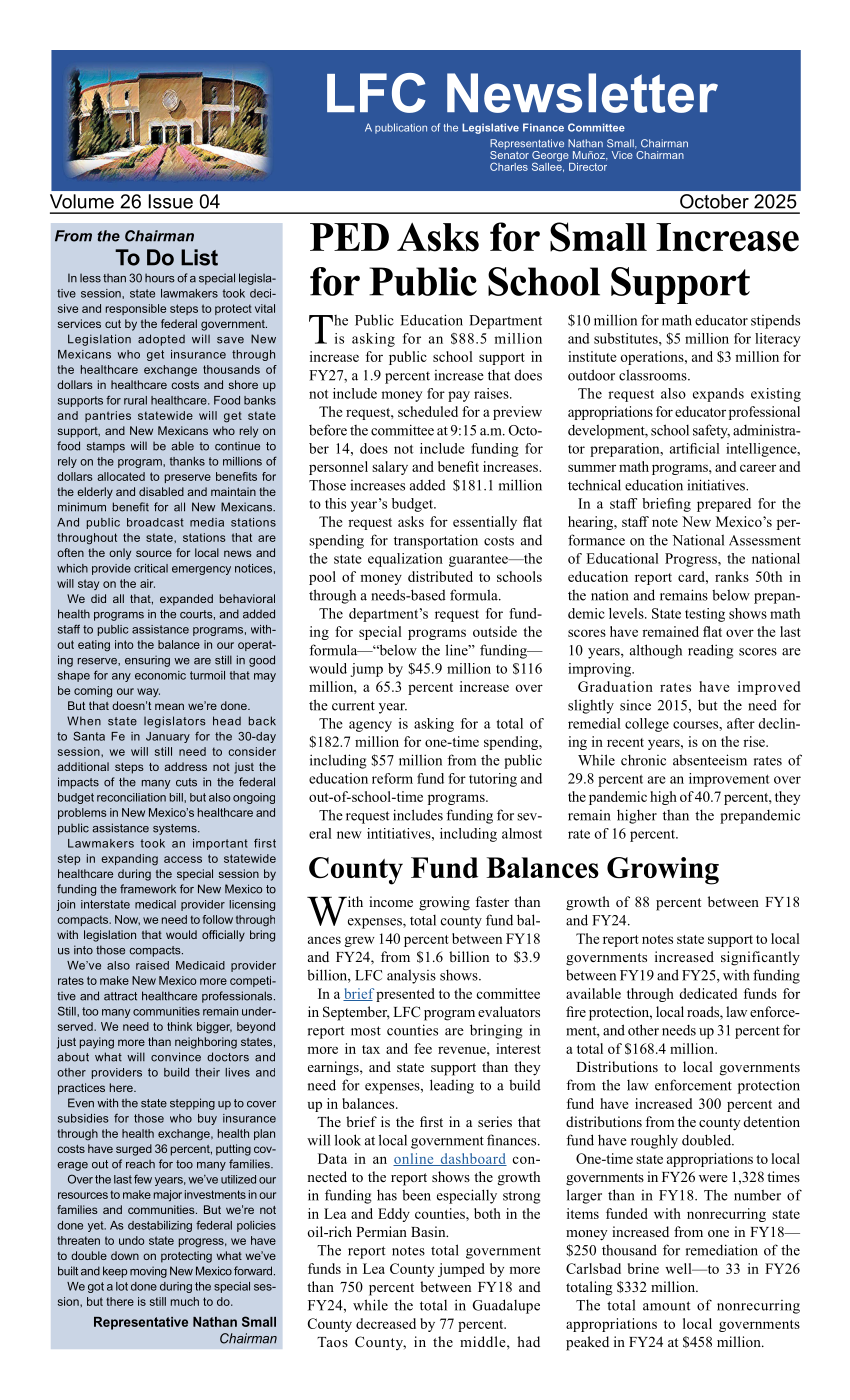 Session publications include the three volumes of the committee’s annual recommendation to the Legislature – policy and performance analysis, proposed appropriations, and supplemental tables and graphs – and the post-session review of legislative action.